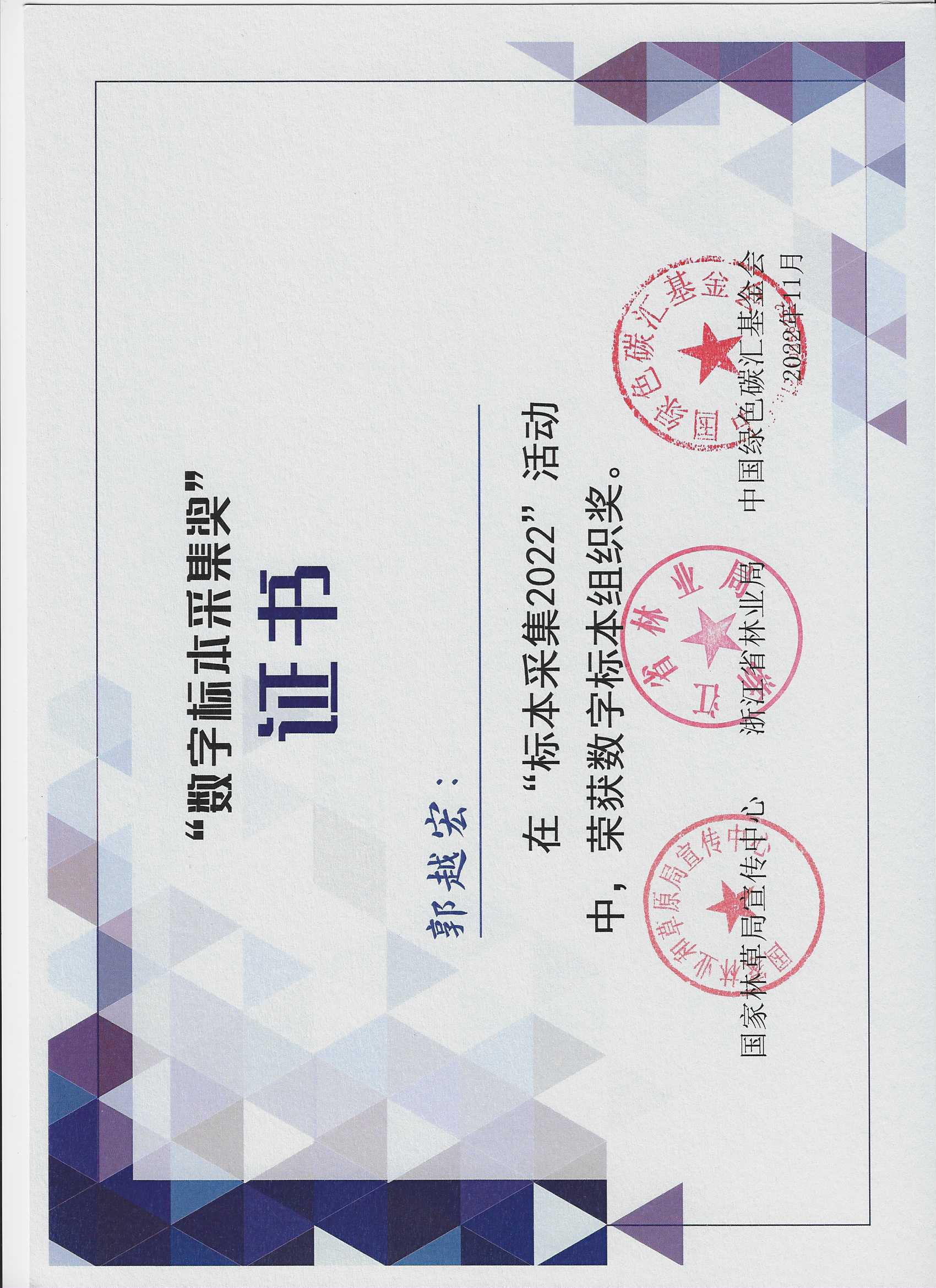 | 數(shù)字標(biāo)本組織獎(jiǎng) | 郭越宏 | 獼猴桃 | 證書(shū) |