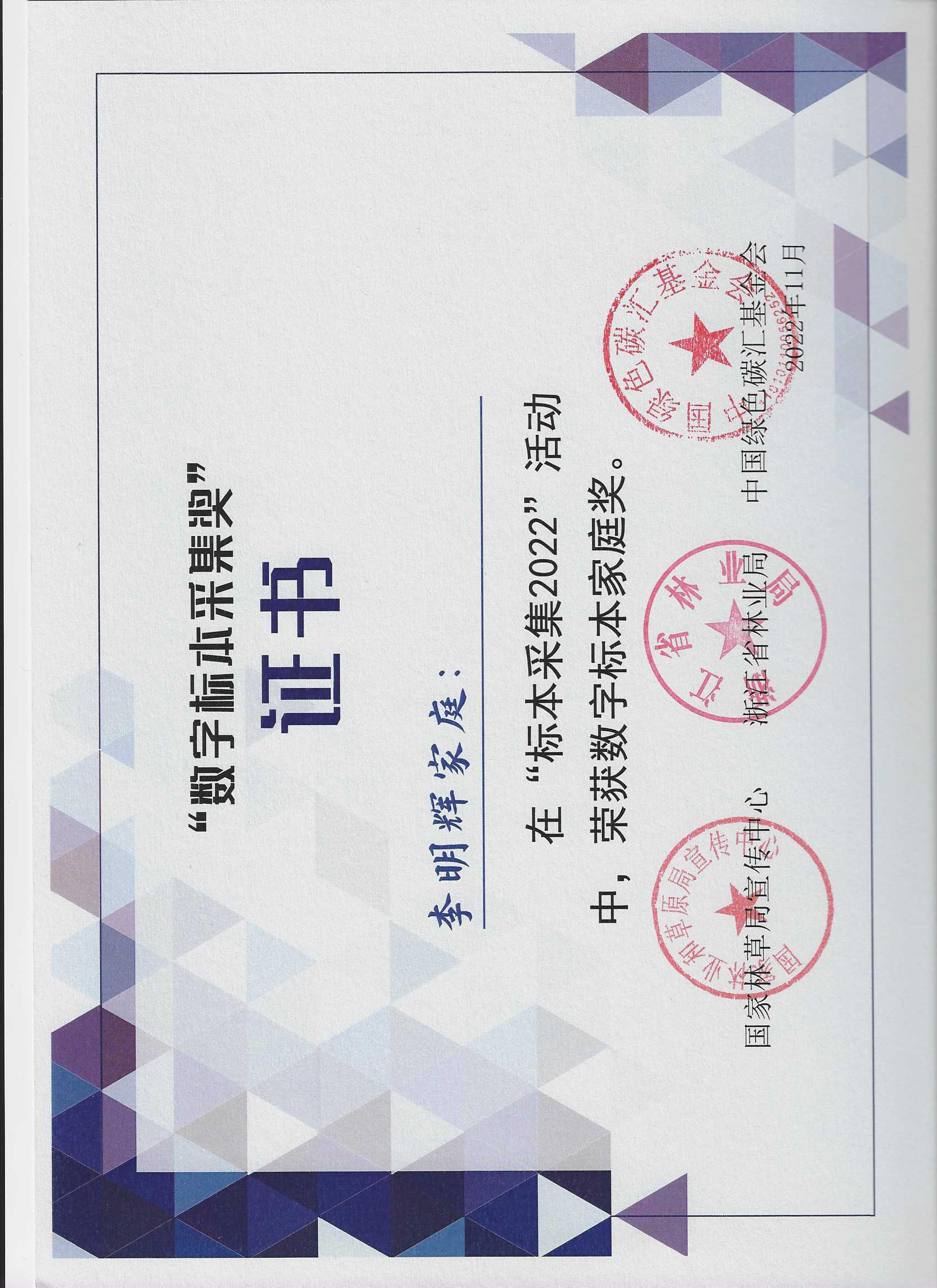 | 數(shù)字標(biāo)本家庭獎(jiǎng) | 李明輝家庭 | 李明輝(夫妻觀察組) | 證書(shū) |