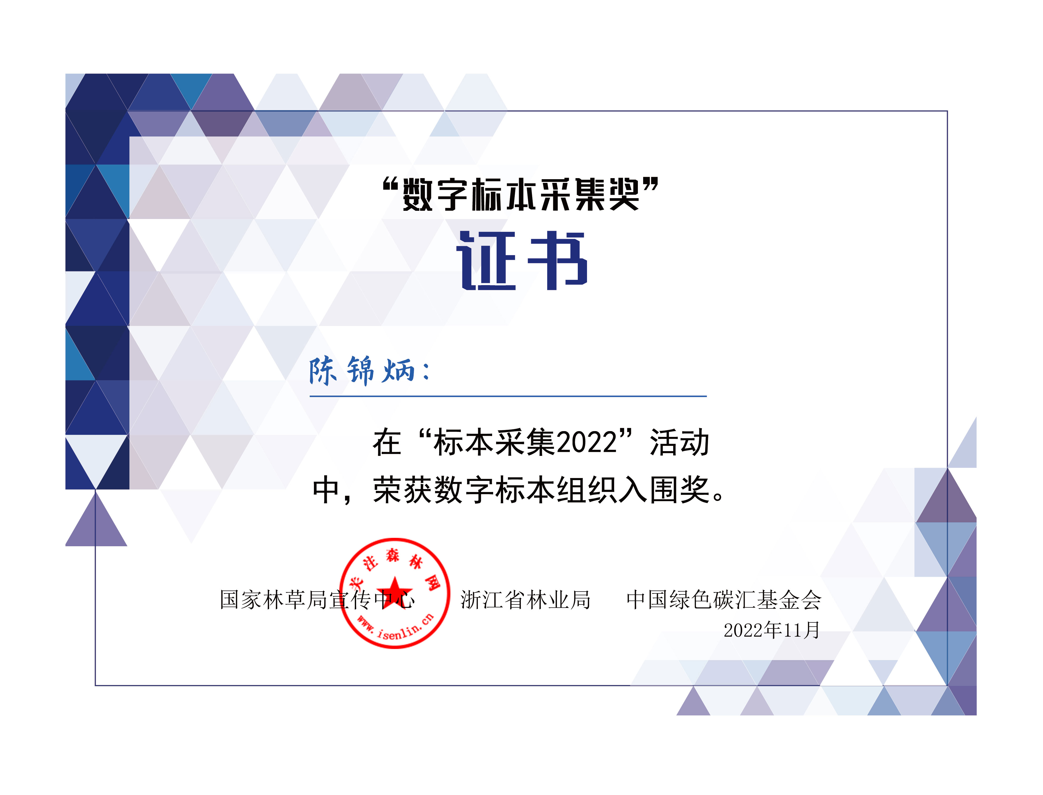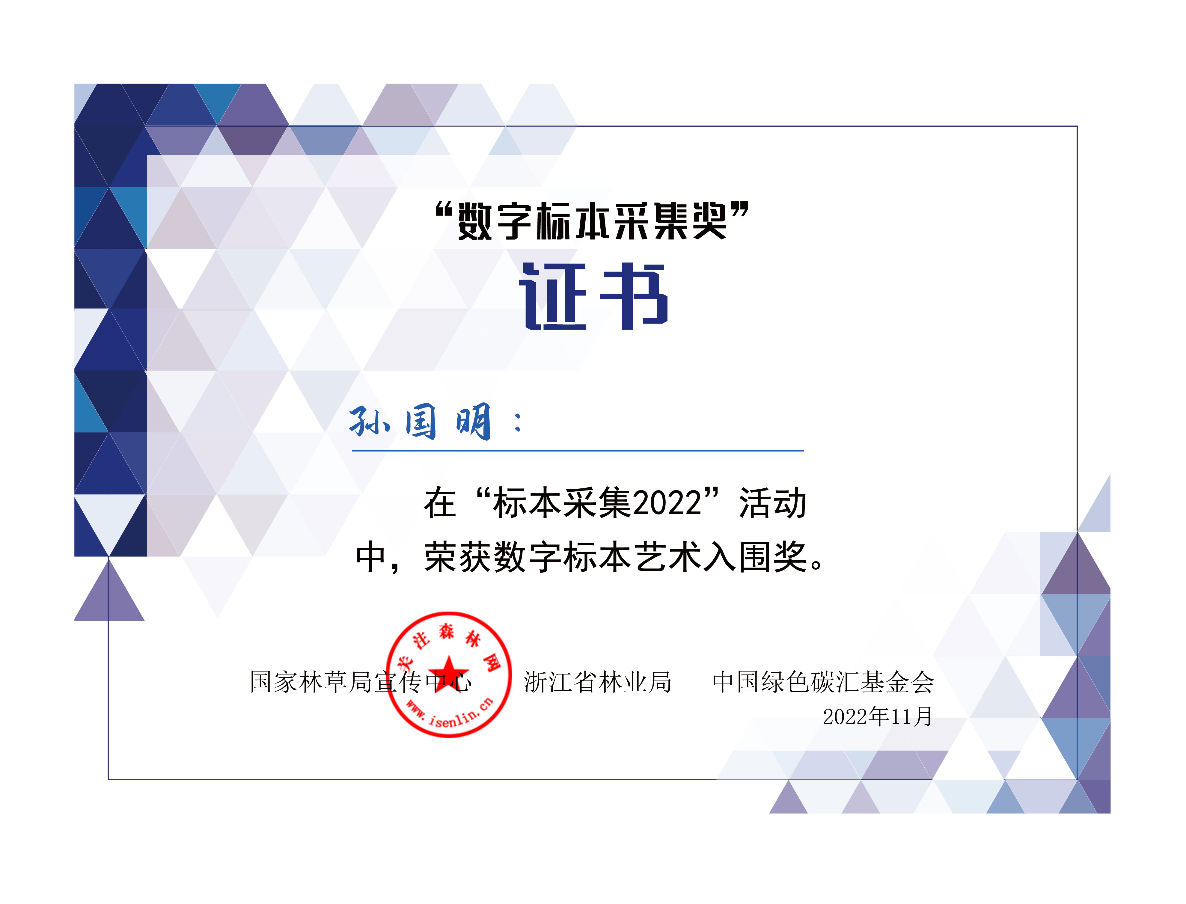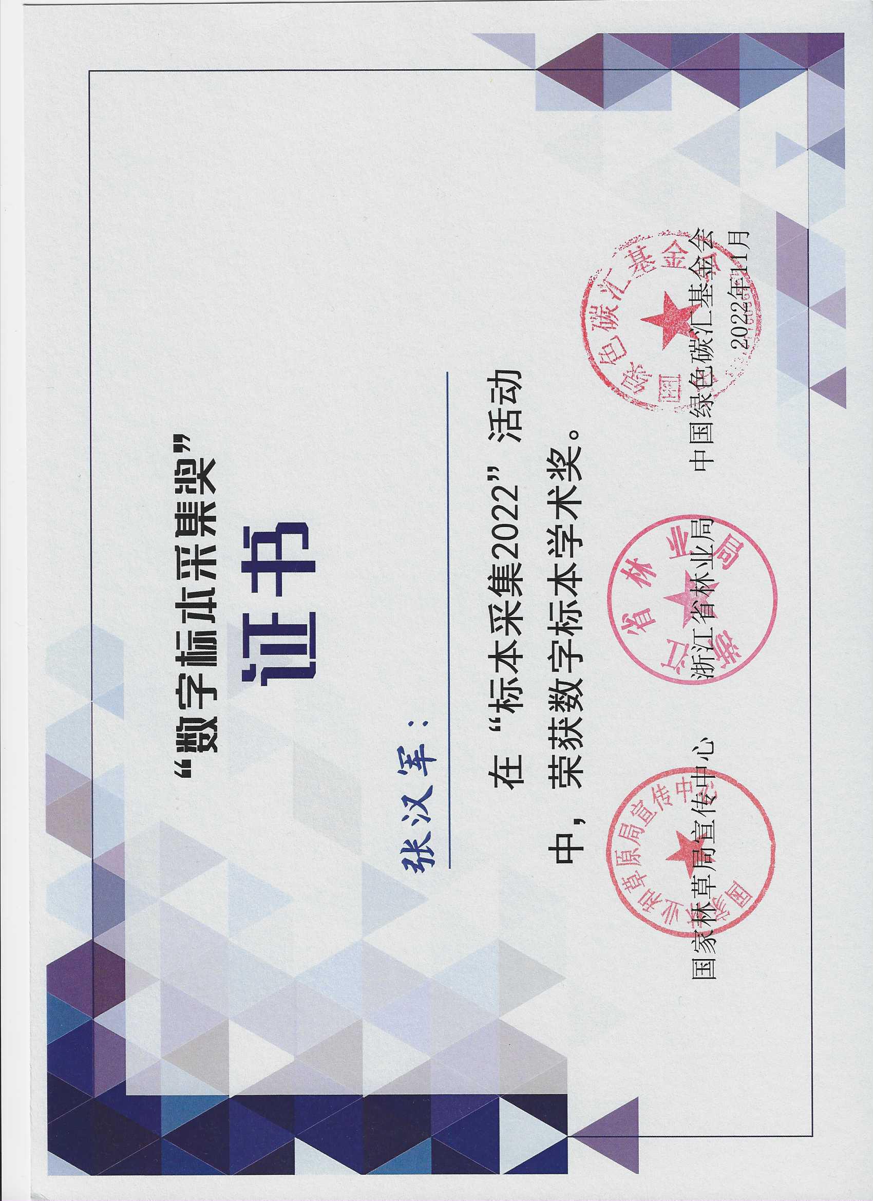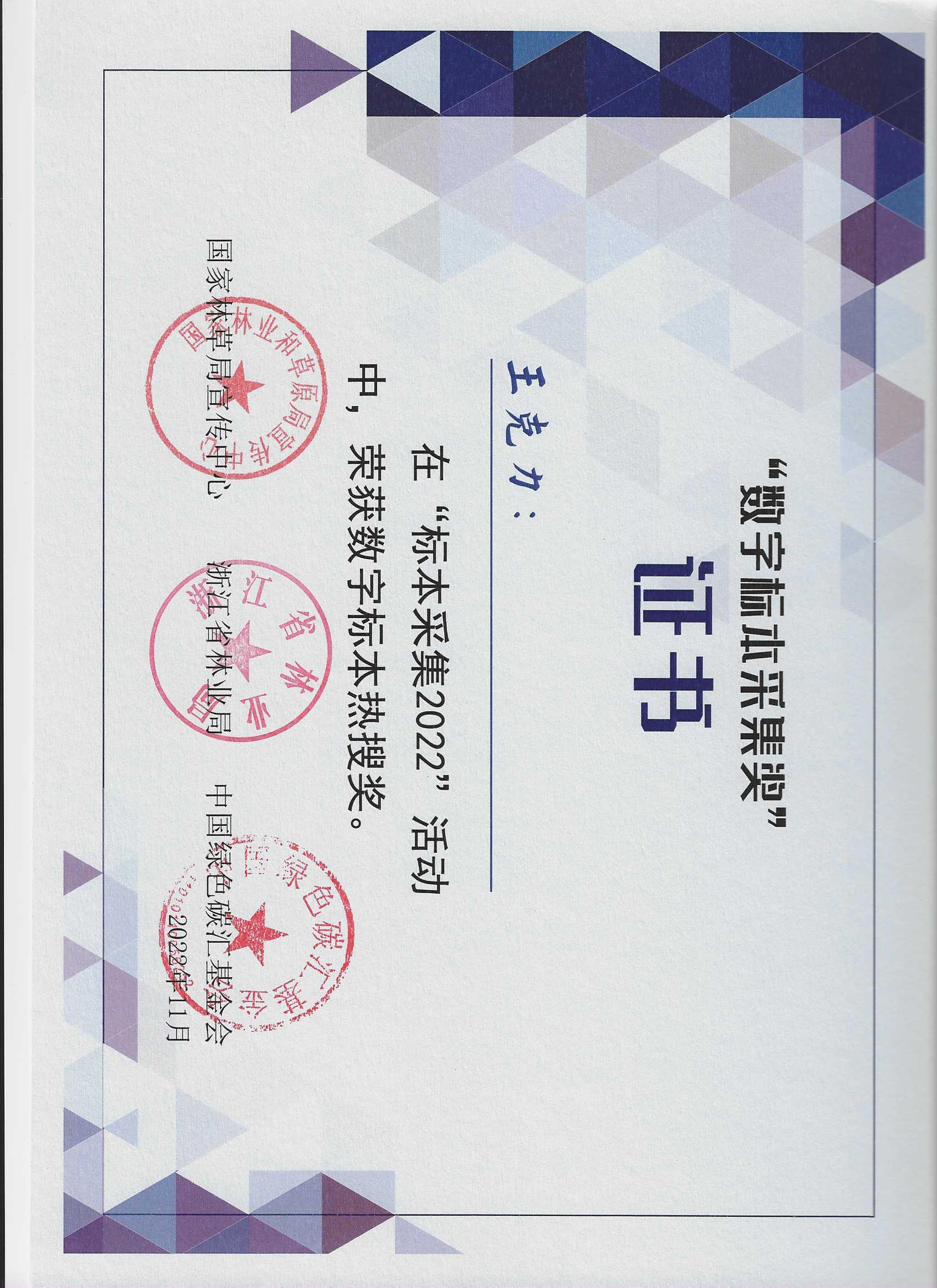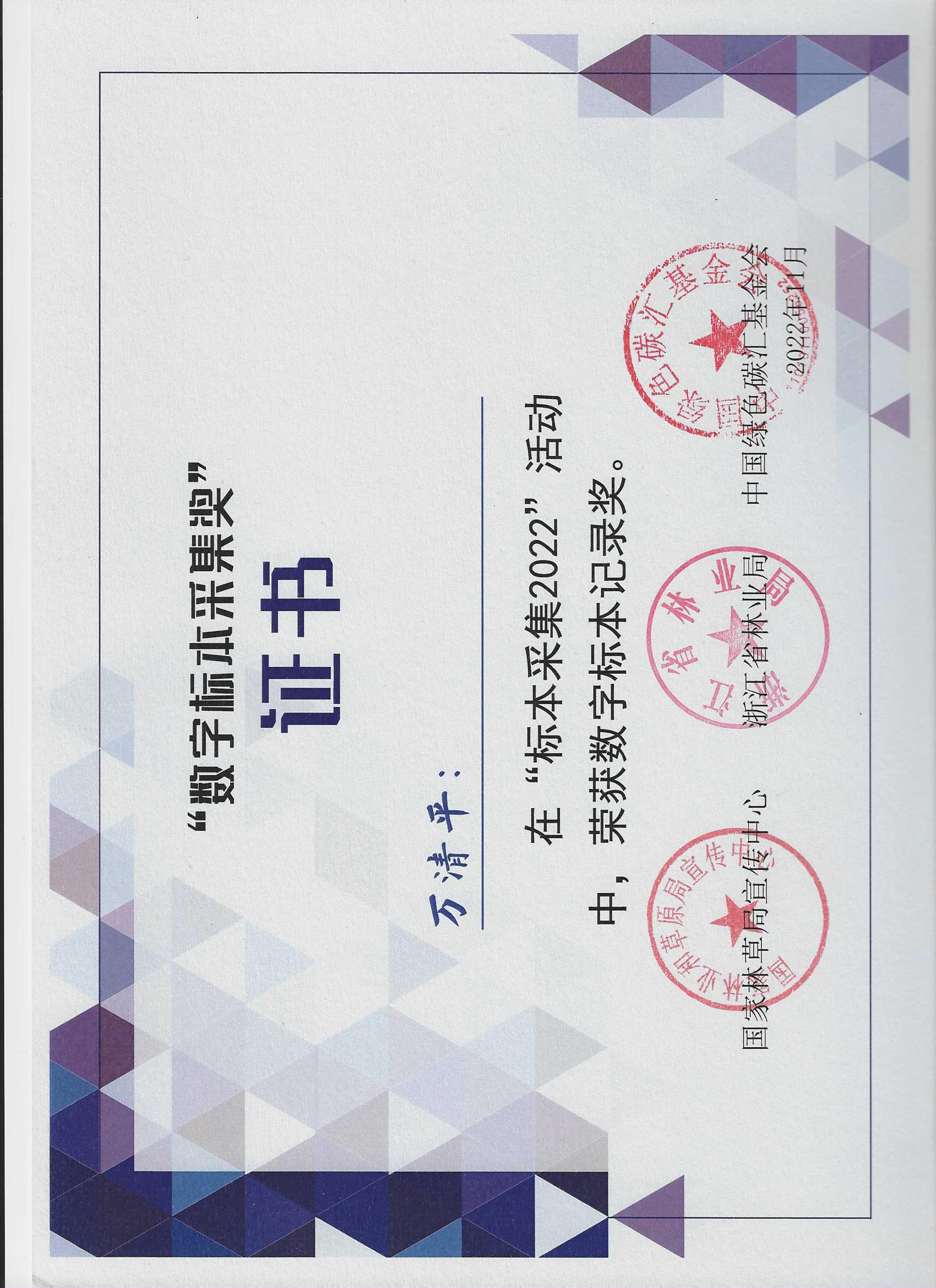 | 數(shù)字標(biāo)本記錄獎(jiǎng) | 萬(wàn)清平 | 證書(shū) | |