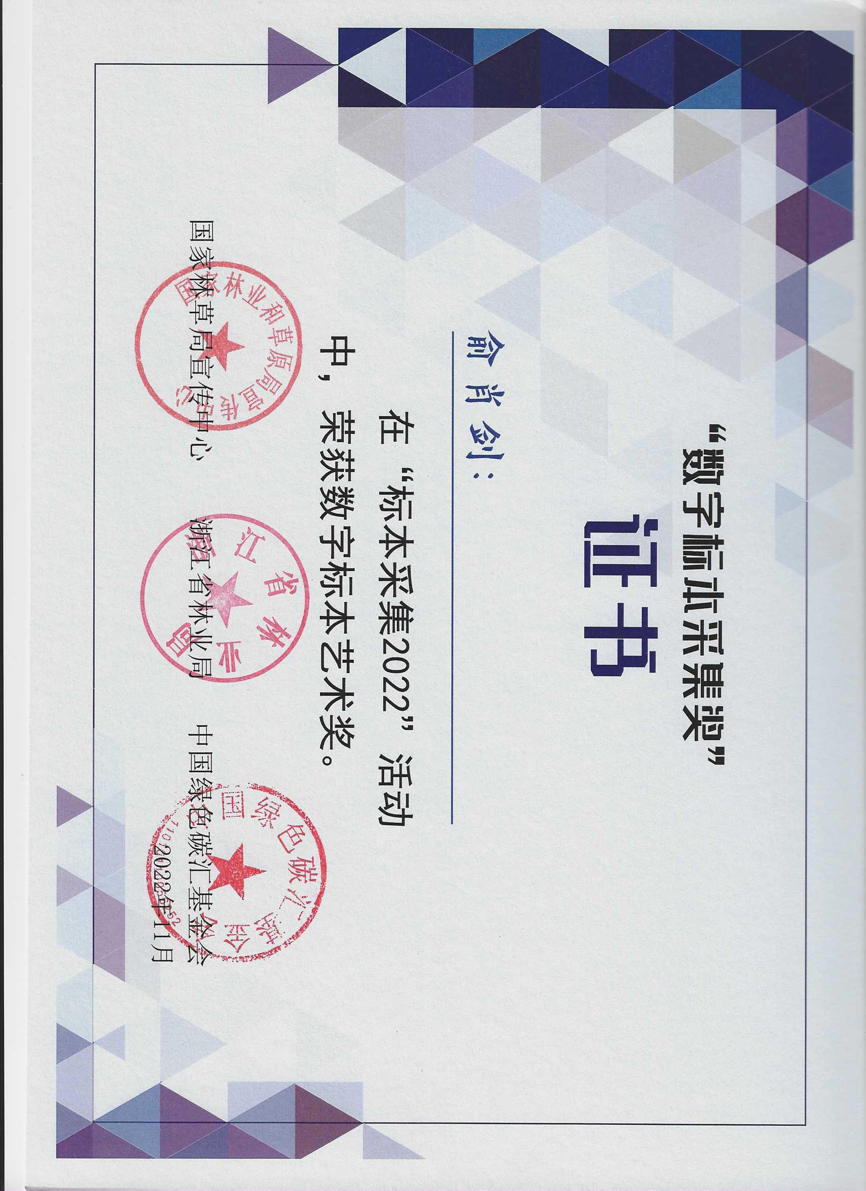 | 數(shù)字標(biāo)本藝術(shù)獎(jiǎng) | 俞肖劍 | 證書(shū) | |